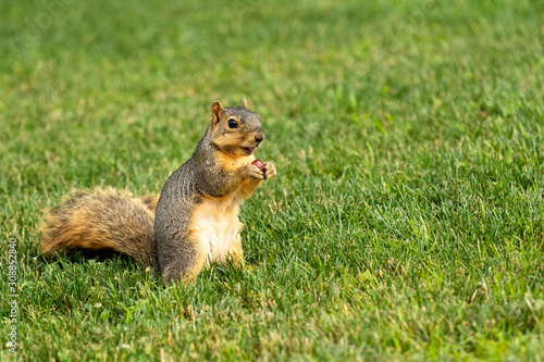© Jennifer, Obraz premium A squirrel standing up eating a grape
