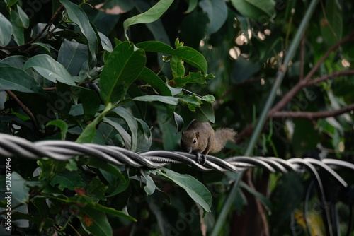 © seraj, Obraz premium a squirrel walking on the power lines