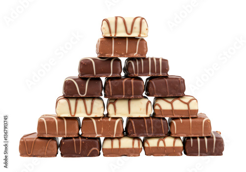 © PP Creative, Obraz premium A stack of assorted square and rectangular chocolates isolated on transparent background