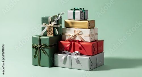 Obraz premium A Stack of Beautifully Wrapped Christmas Gifts