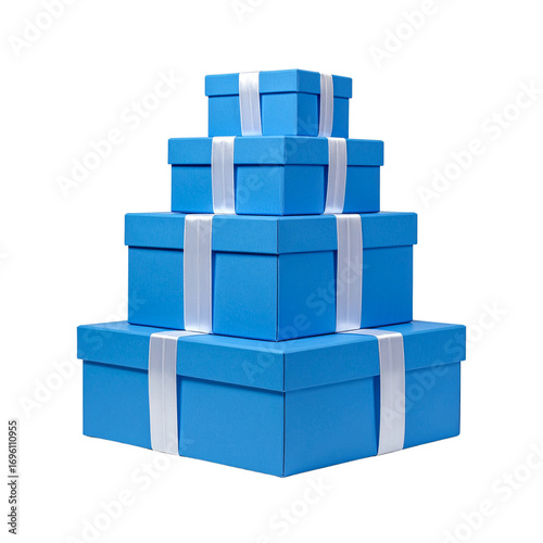 © RUKSHANA, Obraz premium A stack of blue boxes with white bows on top