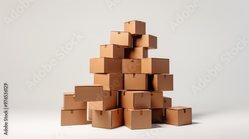 © ShinneProject, Obraz premium A stack of cardboard boxes on a white background.