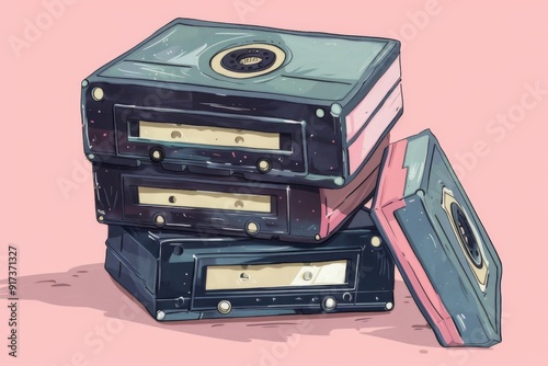 Obraz premium A stack of cassette tapes, filled with beloved children's songs. Illustration...