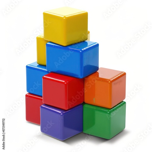 © Thanaporn, Fototapeta premium A stack of colorful blocks with a blue block on top
