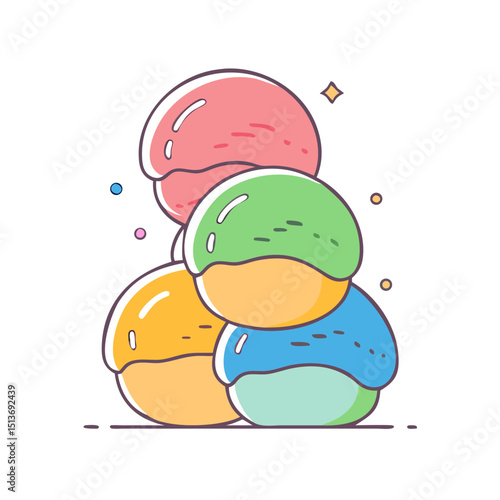 © Mariam, Fototapeta premium A stack of colorful mochi ice cream balls in a cute style illustration