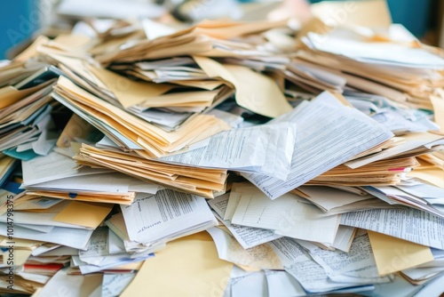 © Fotograf, Fototapeta premium A stack of envelopes and letters sitting on a table, possibly awaiting attention