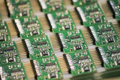 © SimFan, Obraz premium A stack of microchips lying on a table.
