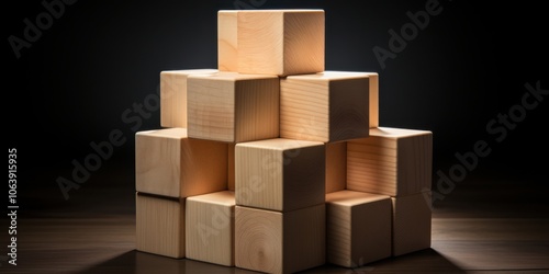 © sasiprapa, Obraz premium A Stack of Natural Wooden Blocks Against a Dark Background, Creating a Visual Representation of Growth, Stability, and Potential