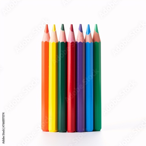 © Maelgoa, Fototapeta premium A stack of vibrant colored pencils on a white sheet of paper
