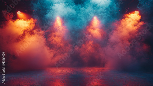 Fototapeta premium A stage bathed in colorful smoke and spotlights.