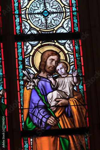 © Shcherbyna, Fototapeta premium A stained glass mosaic window of religion church