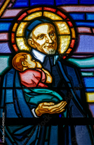 © Joan, Obraz premium A stained glass of Saint Vincent de Paul. Vitrail de Saint Vincent de Paul.