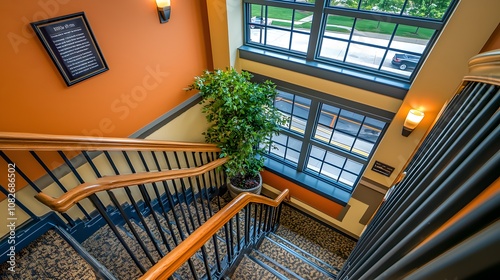 © PB Studio, Obraz premium A staircase with a strong, vibrant color palette, symbolizing optimism, energy, and a bright future.