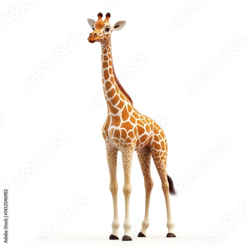 © NikahGeh, Obraz premium A standing giraffe against a plain white background.