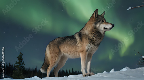 © Masum, Obraz premium a standing in the snow with the aurora lights in the background