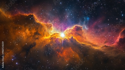 © Penatic Studio, Fototapeta premium A Starburst Within a Glowing Nebula, Filled with Dust and Gas