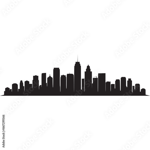 Naklejka premium A stark black silhouette of a city skyline against a plain white background...