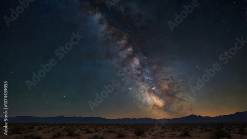 Fototapeta premium A starry night over a vast desert landscape, with the Milky Way shining bright above