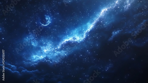 © Background, Fototapeta premium A starry night sky filled with vibrant blue hues and celestial elements.