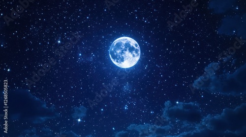 Obraz premium A starry night sky with a full moon shining brightly, surrounded by twinkling stars.