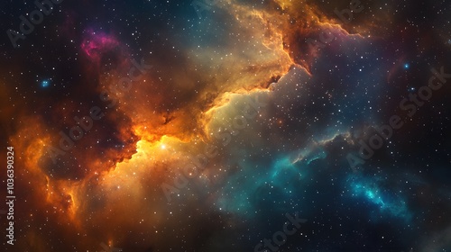 © Dandelions1706, Fototapeta premium A Starry Night Sky with Vibrant Nebulae