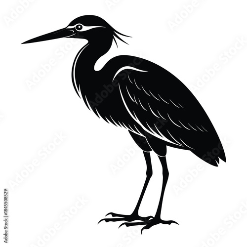 © sumon, Obraz premium A stately dark heron standing with profound grace reflecting nature s quiet beauty minimalist vector