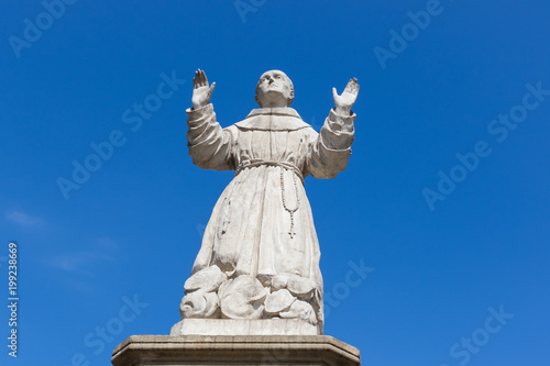 Fototapeta premium A statue of Saint Wojciech against a cloudless blue sky