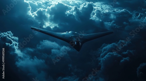 Fototapeta premium A stealth aircraft soars through the night sky, surrounded by dark clouds and...