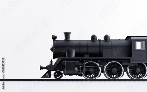 Naklejka premium A steam locomotive in a rail yard, transportation industry, 3D rendering, vintage style, isolated on white background