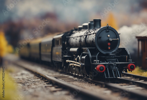 © Natalia Maliseva, Naklejka premium A steam locomotive rides on rails close up