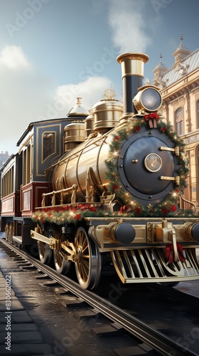 © FantasyDreamArt, Fototapeta premium A Steam Train Chugging Through a Snow Covered Forest