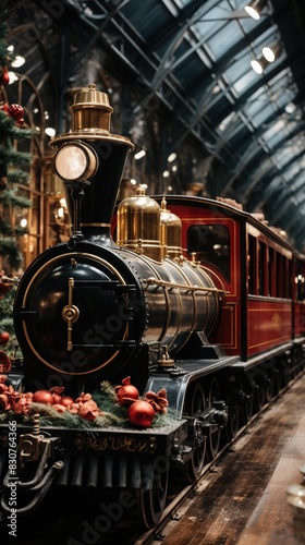 © FestArt, Fototapeta premium A Steam Train Chugging Through a Snow Covered Forest