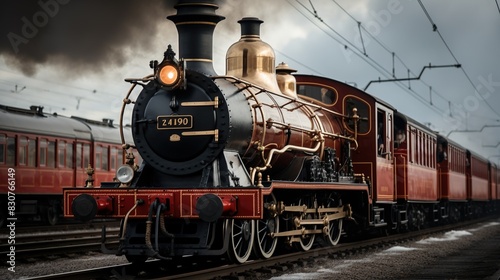 © FestArt, Obraz premium A Steam Train Chugging Through a Snow Covered Forest
