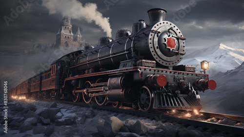 © FestArt, Obraz premium A Steam Train Chugging Through a Snow Covered Forest