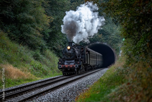 © Babb, Obraz premium A steam train is traveling through a tunnel