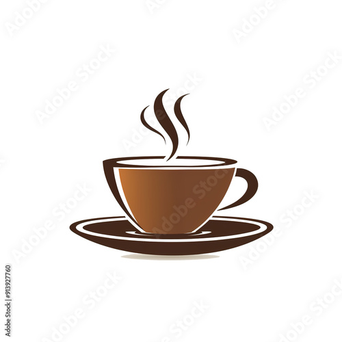© Mutimul, Obraz premium A steaming cup of coffee in a brown saucer, generative ai image