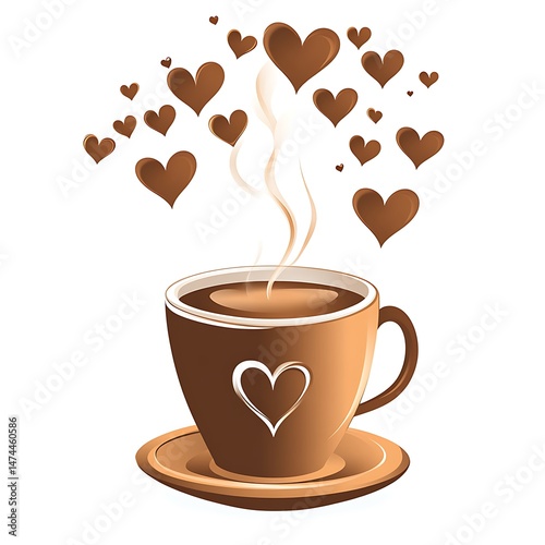 Obraz premium A steaming cup of coffee, surrounded by hearts