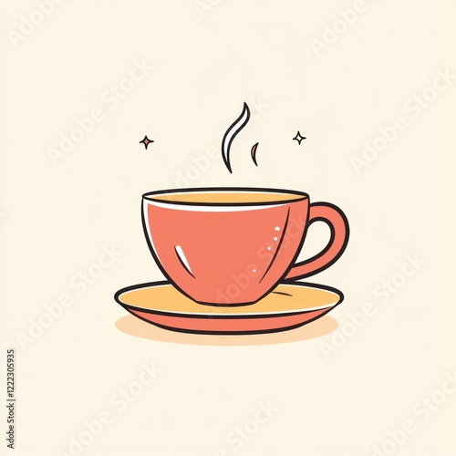 © LyceeChee, Obraz premium A steaming cup of tea rests on a saucer