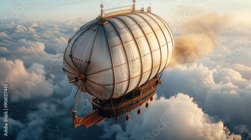Obraz premium A steampunk airship with brass fittings and billowing sails