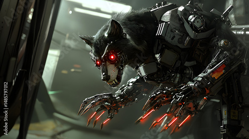 Fototapeta premium A Steampunk Werewolf with Mechanical Claws and Glowing 48a62379 F60f 4ffb...