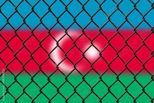 © Oleksandr, Fototapeta premium A steel mesh against the background of the flag Azerbaijan.