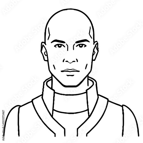 © Diclonius, Obraz premium a stern looking bald man portrait, monochrome line art vector illustration
