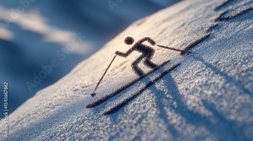 Fototapeta premium A stick figure glides downhill on skis, symbolizing outdoor excitement,...