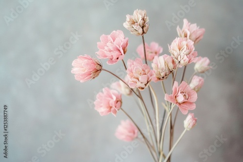 © Alena, Fototapeta premium A still life image of a vase filled with pink flowers sitting on a table