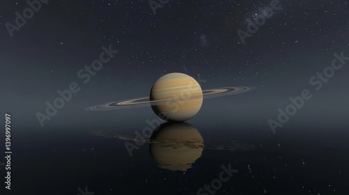 © Julia, Fototapeta premium A stock image of a fantastical scene with Saturn, its moons, other planets, and Saturn's rings