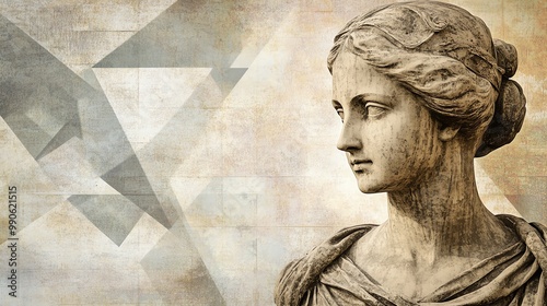 © Galib, Fototapeta premium A stone bust of a woman with a textured background.