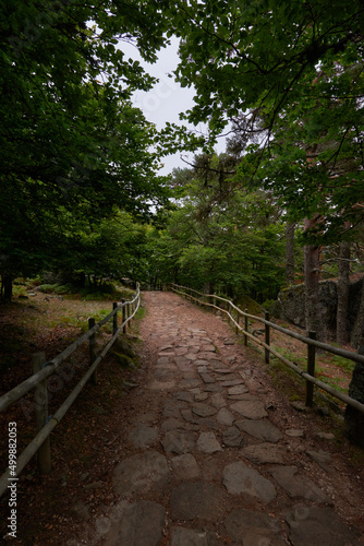 © JoseManuel, Obraz premium A stone path surrounded by pine tree