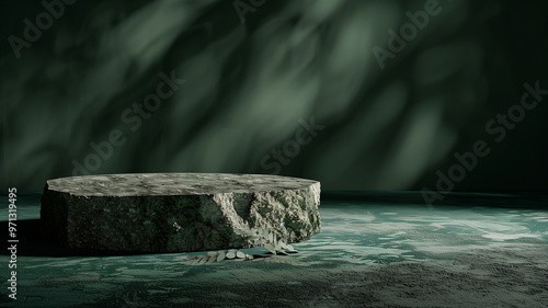 © wanchai, Fototapeta premium A stone pedestal with a large rock on top of it