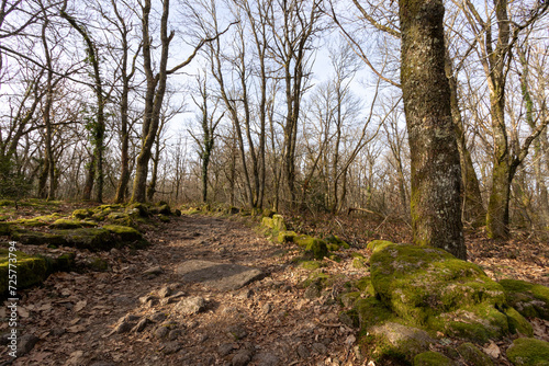 Fototapeta premium A stone woodland path through the forest.