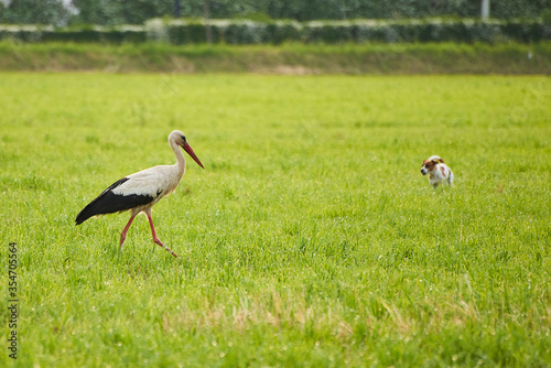 © marcobortignon, Fototapeta premium A stork walking in the city during the pandemic